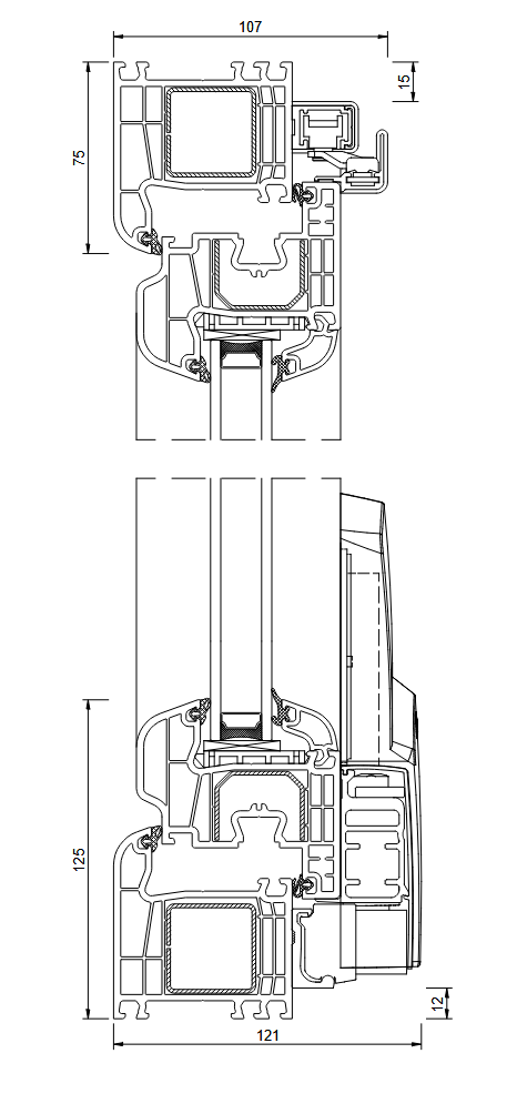 - 2-glazed (1-chamber) units infilled with argon gas with Ug = 1.1 W/(m²K)